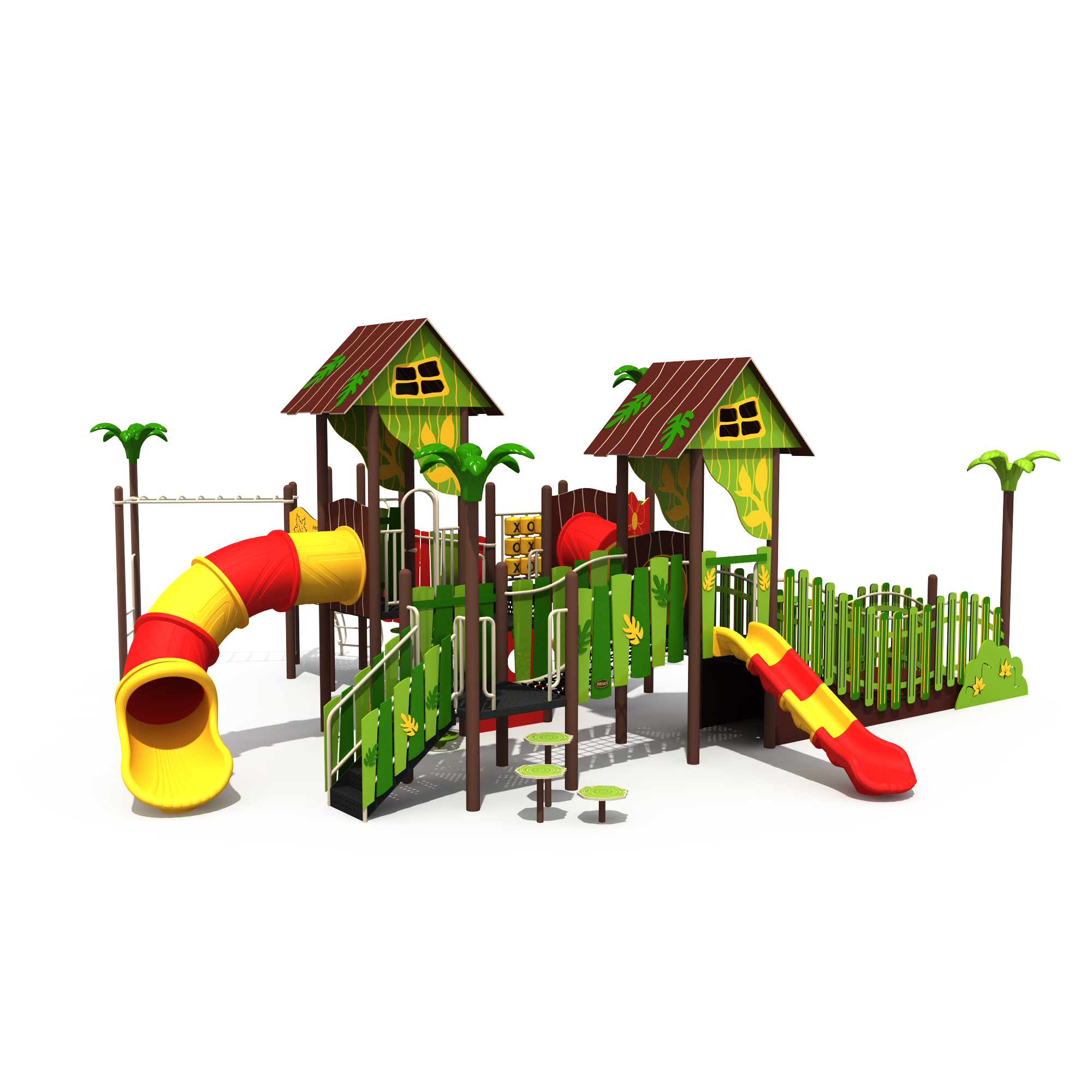 Safe and Durable Structure:The main body of the equipment is made from treated wood and high-strength steel, providing a stable and reliable structure. All connections and edges are smoothed to ensure children's safety. The slide and climbing components are made from weather-resistant plastic, making them durable and easy to maintain.
