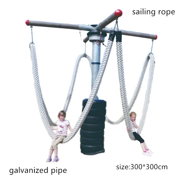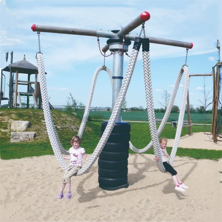 Durable and Secure Construction: Built with a heavy-duty central steel column and a robust rotating mechanism, this carousel is engineered for long-term use. The strong, woven rope swings and secure mounting points ensure a safe and durable structure that can withstand years of active play.