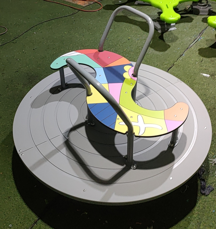 Engineered for Durability and SecurityOur commitment to quality is evident in every component of this spinning chair. The main support structure consists of a heavy-duty galvanized steel central post and a smooth, sealed rotational bearing that provides a consistent and reliable spin. The entire base is anchored securely in the ground, ensuring exceptional stability. The molded bucket seat is made from a durable, UV-resistant High-Density Polyethylene (HDPE), which is non-toxic, anti-static, and resistant to cracking and fading. The low-to-the-ground design minimizes fall height, and the absence of complex moving parts reduces the risk of injury. This combination of industrial-grade materials and a focus on security makes this spinning chair a long-lasting and reliable investment for any playground, ensuring years of safe and enjoyable use