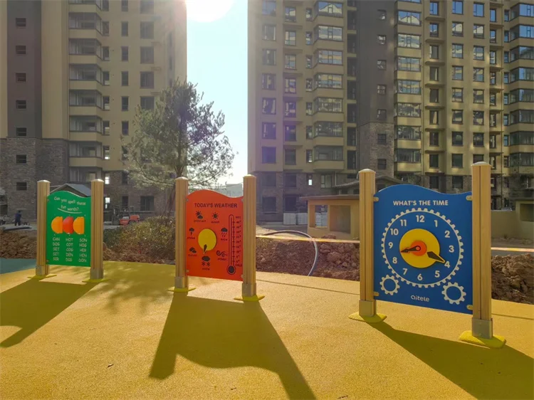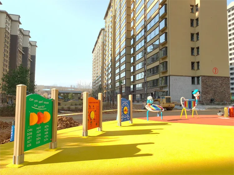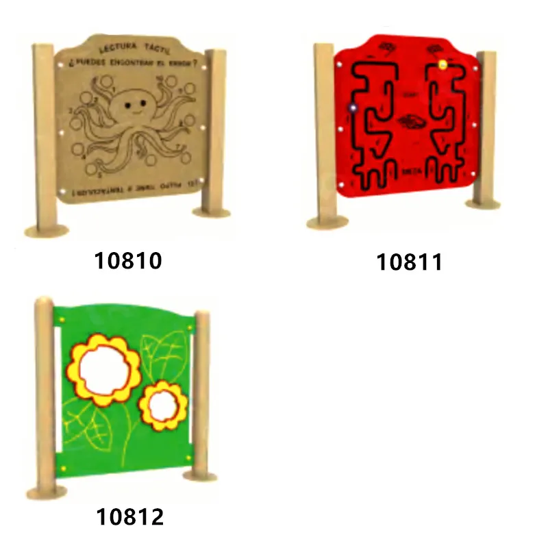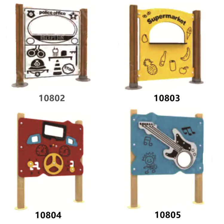 | Materials | The panels of the interactive play panels are usually made by HDPE board ( shorten as PE board). The posts can be of galvanized steel, badi wood or wood plastic. |