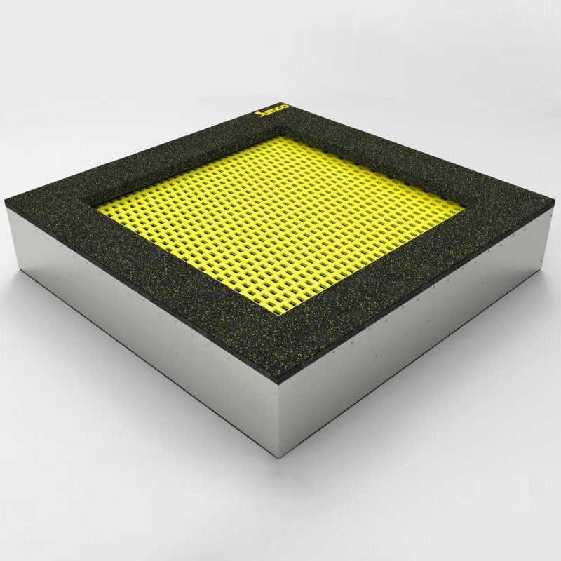 The modular construction allows you to create a customized jumping area, from a single unit for a small space to a large, interconnected grid of bouncing pads for a dynamic play circuit. The system's above-ground profile, framed by thick safety pads, provides a clear visual boundary for children and ensures a safe landing zone around the perimeter. This system encourages active fun, improving balance, coordination, and physical fitness in a social and engaging way.