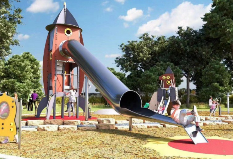 Engineered for Durability and SafetyEvery component of this space-themed playground is built with maximum safety and longevity in mind. The main structures are built on a heavy-duty galvanized steel pipe frame, treated with an advanced UV-resistant electrostatic powder coating to prevent rust and corrosion. The iconic UFO and rocket ship panels are made from durable, low-maintenance Fiberglass-Reinforced Plastic (FRP), known for its smooth finish and resistance to weathering.